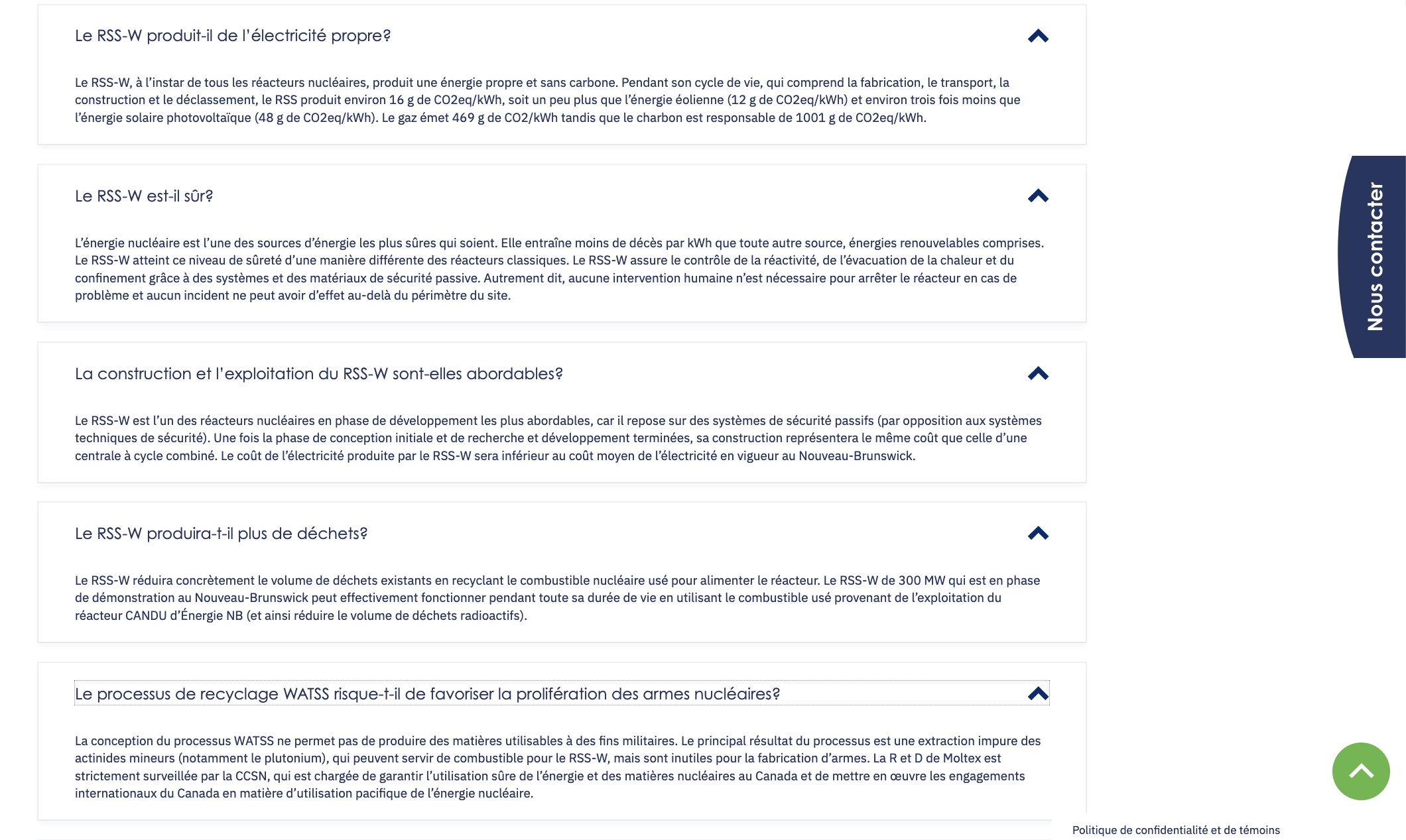 […] « Il y a deux composantes à cela [la minimisation des risques]. Premièrement, nous avons du carburant stocké. Il sert de tampon. En outre, la coopération avec Westinghouse et leurs travaux de développement se sont très bien déroulés », explique M. Lundström. […] « Si les livraisons [russes] ne s’arrêtent pas, nous aurons alors deux fournisseurs. Il n’y a pas encore de décision concernant cette situation. »