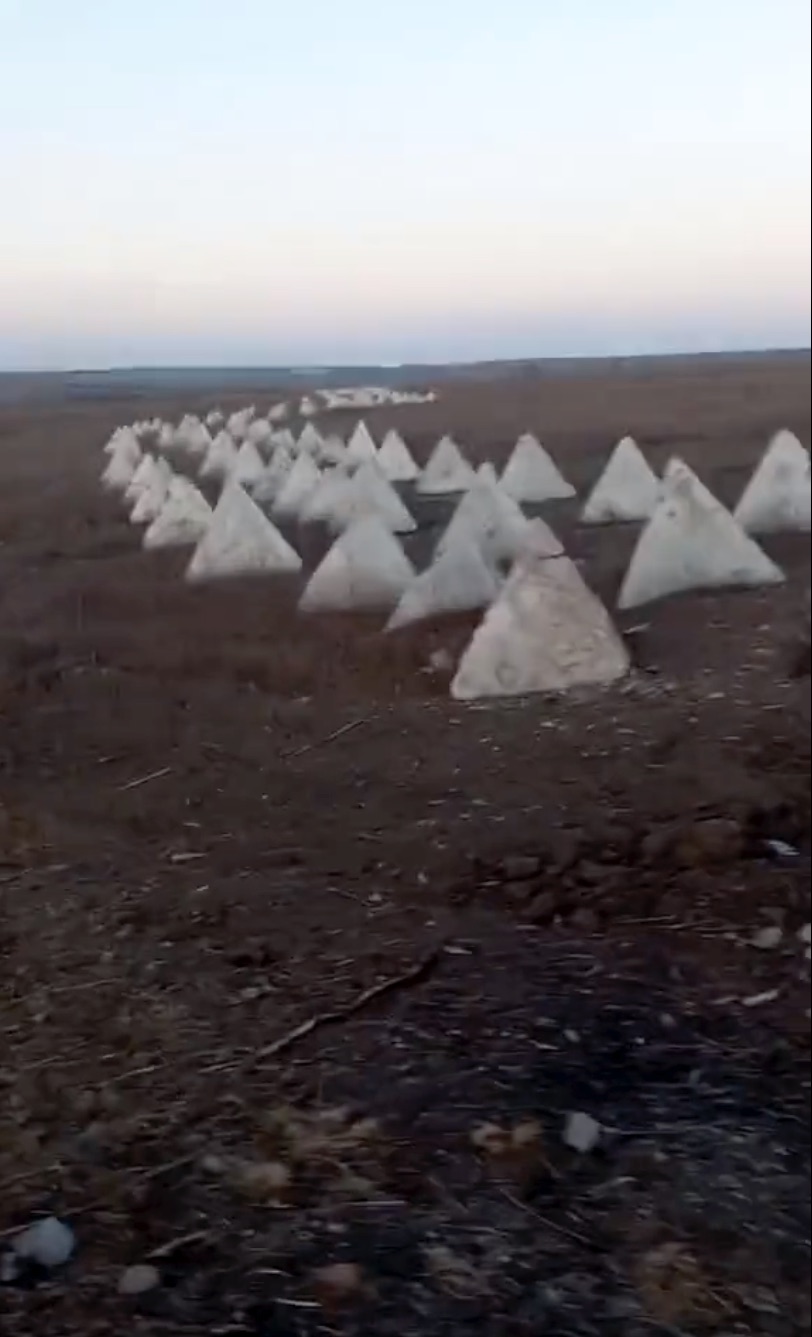 Des soldats ukrainiens marchent près des fortifications russes des "dents du dragon". Front Sud. (traduction Deepl)