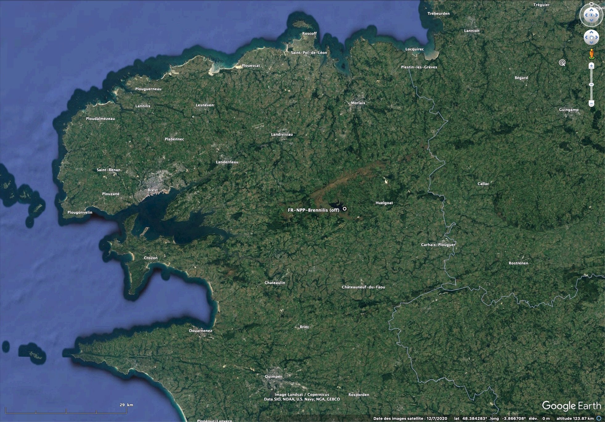 Site électronuc de Brennilis, Google Earth, capture d’écran