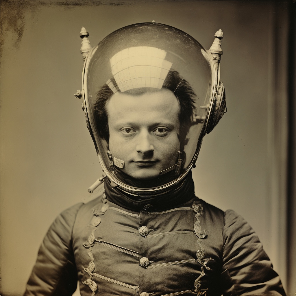 Midjourney, version 5 2, prompt : "a daguerreotype of an astronaut on a horse, nadar, 1860".